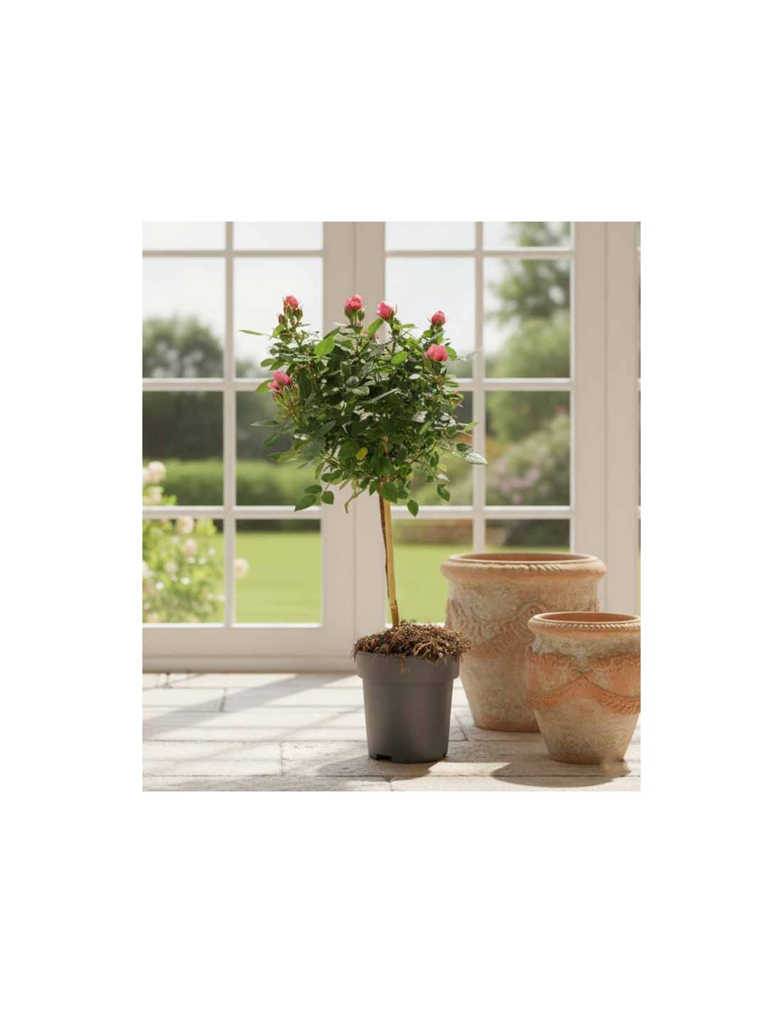 La rosa alberello alta circa 55 cm è perfetta come elemento decorativo singolo o in composizioni simmetriche. Può essere posizionata all'ingresso di casa, lungo vialetti, su terrazzi o balconi soleggiati. Grazie alla sua struttura slanciata, valorizza anche spazi ridotti senza risultare ingombrante.