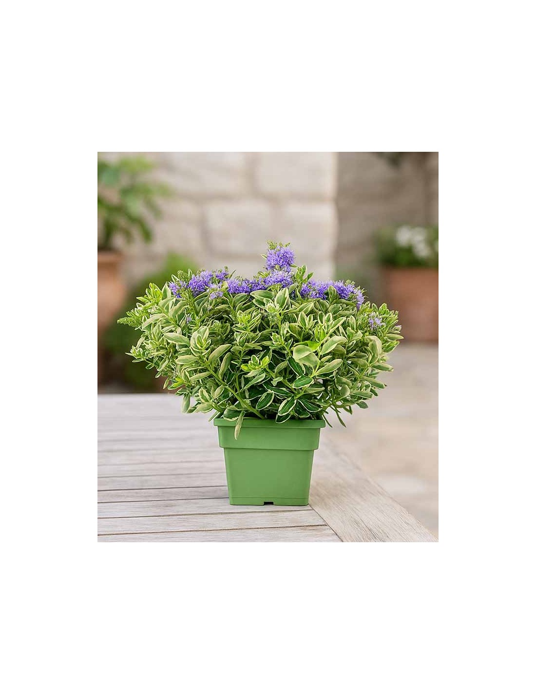 La pianta veronica variegata è una perenne sempreverde molto apprezzata per il fogliame decorativo e la sua resistenza. Con un'altezza di 40 cm e coltivata in vaso Ø17 cm, questa pianta è perfetta per dare colore e movimento a giardini, terrazzi e bordure.