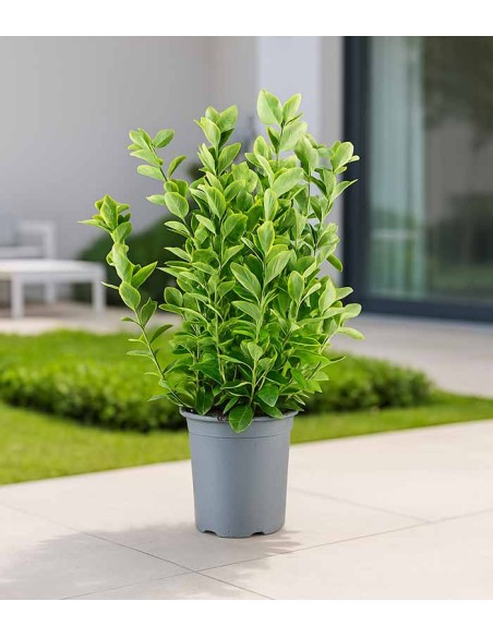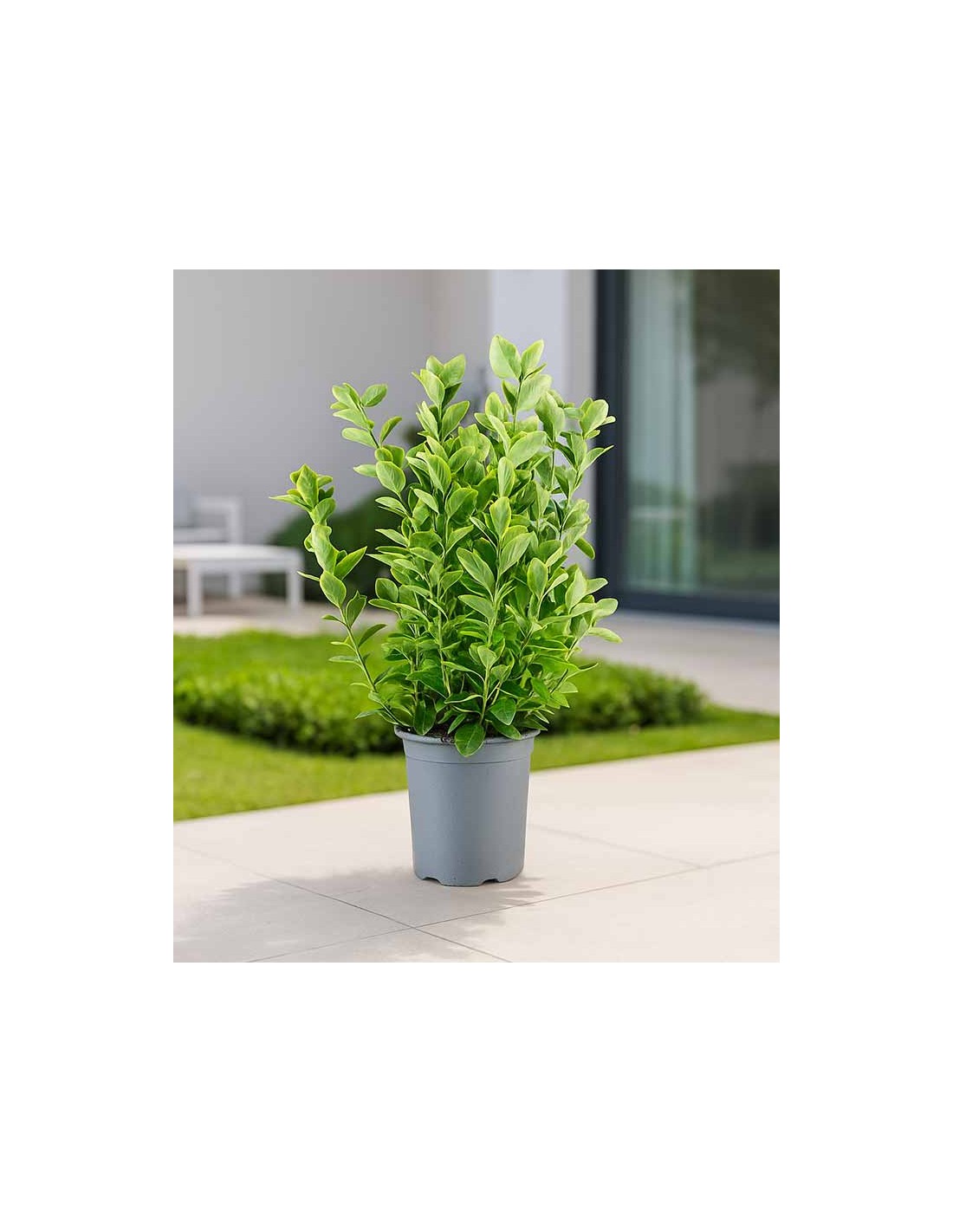 L'evonimo giapponese (Euonymus japonicus aurea) è una pianta ornamentale sempreverde molto apprezzata per la bellezza del suo fogliame variegato verde e giallo oro. Questo esemplare, alto 60 cm e coltivato in vaso Ø18 cm, è ideale per abbellire giardini, terrazzi e balconi con un tocco elegante e luminoso.