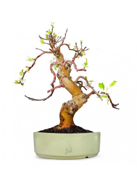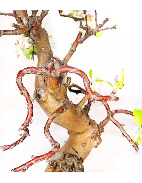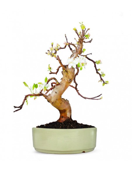 La meraviglia del bonsai di melo sono: la grande quantità di fiori bianchi e la produzione di frutti.