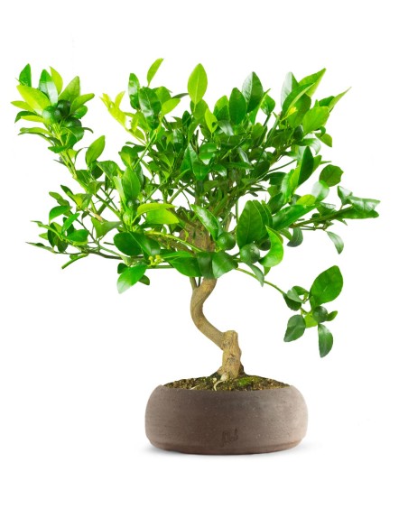 Il Bonsai Citrus reshni è come un piccolo tesoro agrumato di 14 anni cresciuto e curato con passione per diventare una vera e propria star del tuo giardino o del tuo interno. Con la sua bellezza compatta e le sue dimensioni di circa 50 cm, è un albero dalle grandi ambizioni che si adatta perfettamente all'arte del bonsai.