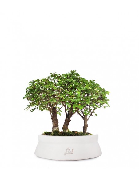 La coltivazione di tale bonsai è molto semplice e anche i principianti non si troveranno in difficoltà: se hai la fortuna di avere uno spazio all'aperto, questa Ulmacea si adatta bene in posizioni soleggiate, a patto di ombreggiarla quando il calore è eccessivo. Nel corso dell'inverno, specialmente se le temperature sono molto rigide, è sufficiente proteggere le fronde e il vaso con un foglio di tessuto-non-tessuto. Altrimenti lasciala vivere all'interno, ma evita di alternare le due collocazioni. Un paio di volte al mese fertilizza il tuo albero in miniatura e potalo in autunno, eliminando i rami che crescono in modo disordinato. Per quanto riguarda le annaffiature: non esagerare e, prima di ripetere l'operazione, lascia asciugare bene il terreno. Il rinvaso deve essere fatto ogni due anni, utilizzando terriccio specifico. Una pianta scenografica accompagnata da un contenitore altrettanto d'effetto.