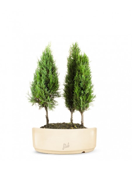 Possedere un cipresso a boschetto e?, per gli appassionati di bonsai, una delle sfide piu? avvincenti. Pianta dal portamento slanciato e colonnare, il cipresso, ha un fusto liscio, segnato da fessure grigiastre. Le foglie sono intervallate in primavera da infiorescenze dalla forma di globuli violetti o piccole sacche gialle. Stile bonsai e tecnica di disposizione delle piante in vaso, il cipresso a boschetto e? la riproduzione di un bosco in casa. I cipressi, presenti sempre in numero dispari per la realizzazione di un boschetto, amano il sole pieno e i terreni umidi ma non bagnati. Necessitano di vaporizzazioni frequenti e angoli ombreggiati d'estate, mentre d'inverno e? bene proteggerli dalle gelate.