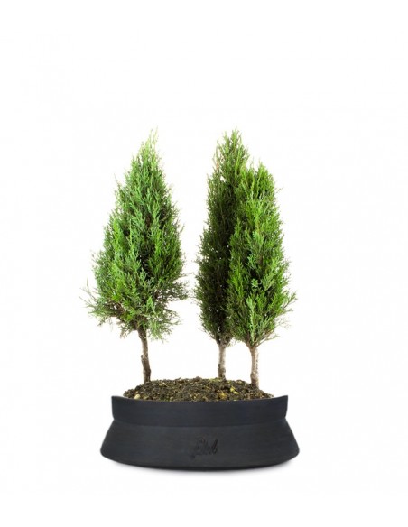 Possedere un cipresso a boschetto e?, per gli appassionati di bonsai, una delle sfide piu? avvincenti. Pianta dal portamento slanciato e colonnare, il cipresso, ha un fusto liscio, segnato da fessure grigiastre. Le foglie sono intervallate in primavera da infiorescenze dalla forma di globuli violetti o piccole sacche gialle. Stile bonsai e tecnica di disposizione delle piante in vaso, il cipresso a boschetto e? la riproduzione di un bosco in casa. I cipressi, presenti sempre in numero dispari per la realizzazione di un boschetto, amano il sole pieno e i terreni umidi ma non bagnati. Necessitano di vaporizzazioni frequenti e angoli ombreggiati d'estate, mentre d'inverno e? bene proteggerli dalle gelate.