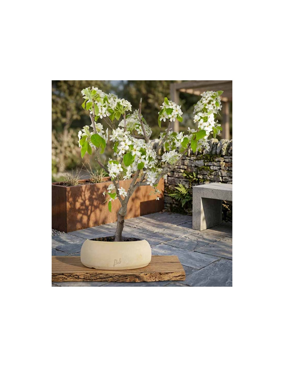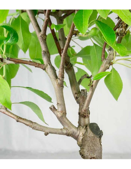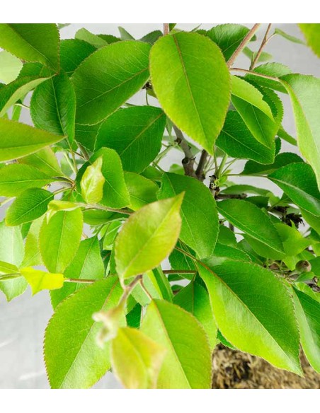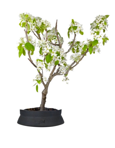 Il pero bonsai ha un aspetto rustico ma elegante, una forma compatta e curva con foglie di colore verde scuro che iniziano a svilupparsi in primavera, per poi cambiare colore fino a perderle naturalmente durante la stagione fredda.