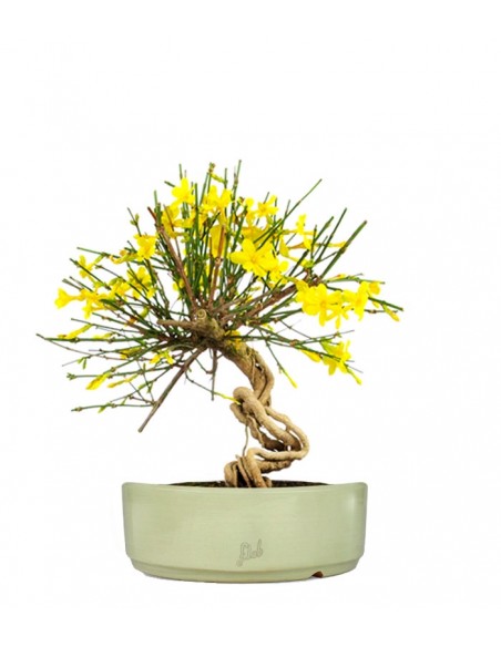 Il Gelsomino d'inverno (Jasminum Nudiflorum), è un bonsai da esterno originario della Cina e caratterizzato da rami sottili di un bel verde scuro, da foglie lucide della medesima tonalità e da piccoli fiori gialli che fanno la loro comparsa quando l'inverno comincia a volgere al termine. Il bonsai di gelsomino richiede davvero poche cure, si coltiva con facilità ed è quindi adatto anche a chi non ha grande esperienza. Si tratta, infatti, di una pianta molto rustica che apprezza qualsiasi posizione anche se, in pieno sole, offre una fioritura più abbondante. In caso di inverni particolarmente rigidi è consigliabile fornire al bonsai di Jasminum Nudiflorum una protezione di tessuto non tessuto così da evitare che il gelo danneggi i boccioli.