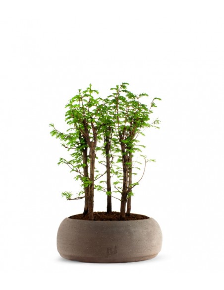 La metasequoia boschetto è un pianta primitiva che si riteneva estinta e che invece è stata riscoperta in Cina negli anni Quaranta. Appartiene alla famiglia delle conifere e si presenta con una bella chioma formata da verdi foglie aghiformi che durante l'autunno assumono un brillante colore giallo-rosso. Si tratta di una specie vegetale molto apprezzata come bonsai perché la sua coltivazione è molto semplice, infatti non teme il freddo e può essere tenuta all'esterno anche in inverno. Ama i terreni umidi perciò le annaffiature devono essere frequenti, soprattutto durante l'estate, periodo in cui è bene posizionarla all'ombra.