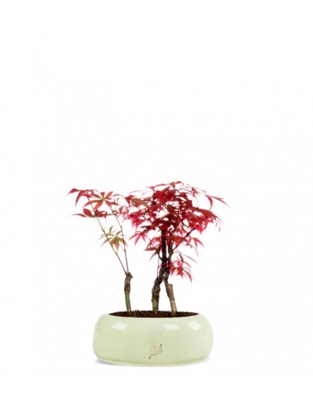 C'è tanto sapore d'Oriente in questo acero. Si tratta di un bonsai molto resistente, facilmente adattabile, che sopporta anche periodi di carenza d'acqua e assolutamente incurante delle variazioni di temperatura e di potature drastiche o effettuate in periodi sbagliati. In poche parole, è il bonsai ideale per chi desidera dare un tocco raffinato al proprio appartamento senza doversi preoccupare eccessivamente per la sua cura. Le regole alle quali dovete attenervi sono davvero poche e di semplice esecuzione: sarà sufficiente utilizzare un terreno leggermente acido che va mantenuto sempre ben drenato. La pianta richiede irrigazioni regolari, ma mai esagerate, e una concimazione all'anno utilizzando fertilizzanti a cessione lenta. L'acero è un bonsai da esterno e va posizionato in una zona molto luminosa (come un balcone o un terrazzo) ma possibilmente evitando la luce diretta del sole che potrebbe danneggiare le foglie -soprattutto in periodo estivo- e le forti correnti d'aria. La pianta ricompenserà queste minime cure con una splendida colorazione rosso fuoco del suo fogliame in autunno, che si protrarrà per qualche settimana, facendo gustare appieno il passaggio delle stagioni.