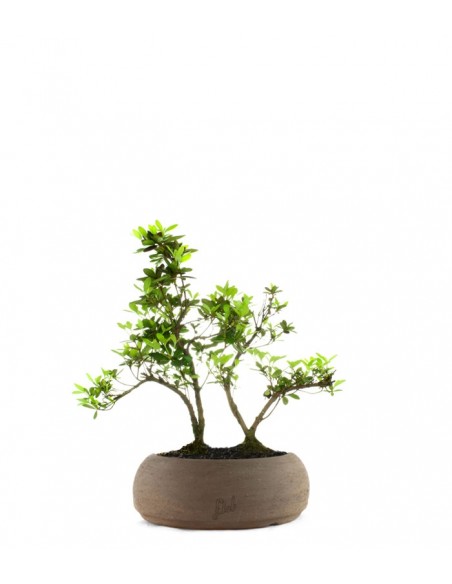 L'Azalea Japonica, conosciuta anche come Albero delle rose o Rhododendron, è una delle varianti più apprezzate dagli artisti bonsaisti per via delle sue foglie piccole e scure, del tronco rugoso con nebari che partono a raggiera e dei fiori bianchi, rosa o violacei, che tendono a ricoprire tutti i rami, offrendo splendide fioriture primaverili. Ama gli ambienti leggermente umidi e luminosi, ma non la luce diretta del sole: l'ideale sarebbe posizionarla accanto a una pianta più grande che possa farle ombra. Necessita di annaffiature frequenti con acqua piovana o demineralizzata e la potatura va fatta quando i 2/3 dei fiori sono appassiti. Come le altre piante appartenenti alla famiglia delle Ericaceae, richiede un terreno acido (pH 4,5-5,5): si possono usare la torba bionda, la sabbia oppure il kanuma, una particolare argilla giapponese.