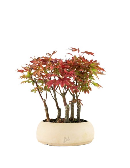La disposizione di più bonsai nello stesso vaso è volta a creare, infatti, l'atmosfera di un piccolo boschetto in miniatura, e nel caso dell'Acero risulta ottima per creare un impatto visivo decisamente notevole. Questa versione con 5 bonsai assume un'accezione veramente interessante.