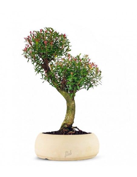 Il Syziygium è originario dell'Asia minore e in natura può raggiungere un'altezza di 2-3 metri: è un elemento importante per le foreste pluviali essendo fonte di cibo per molti animali. In primavera possiede dei fiori bianchi, spesso seguiti da alcune bacche. Il bonsai è di facile coltivazione, ma nei luoghi più freddi va collocato all'interno durante l'inverno. E' detto anche Mirto cinese; appartiene infatti alla stessa famiglia del Mirto e ben si presta all'utilizzo come bonsai grazie alle sue foglie di piccole dimensioni e alla chioma rotondeggiante.