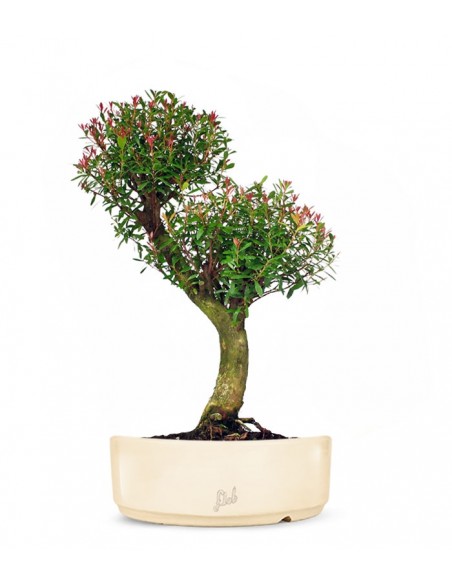 Il Syziygium è originario dell'Asia minore e in natura può raggiungere un'altezza di 2-3 metri: è un elemento importante per le foreste pluviali essendo fonte di cibo per molti animali. In primavera possiede dei fiori bianchi, spesso seguiti da alcune bacche. Il bonsai è di facile coltivazione, ma nei luoghi più freddi va collocato all'interno durante l'inverno. E' detto anche Mirto cinese; appartiene infatti alla stessa famiglia del Mirto e ben si presta all'utilizzo come bonsai grazie alle sue foglie di piccole dimensioni e alla chioma rotondeggiante.