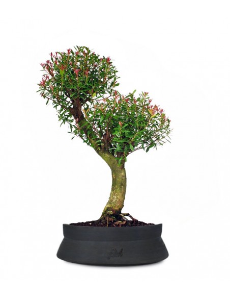 Il Syziygium è originario dell'Asia minore e in natura può raggiungere un'altezza di 2-3 metri: è un elemento importante per le foreste pluviali essendo fonte di cibo per molti animali. In primavera possiede dei fiori bianchi, spesso seguiti da alcune bacche. Il bonsai è di facile coltivazione, ma nei luoghi più freddi va collocato all'interno durante l'inverno. E' detto anche Mirto cinese; appartiene infatti alla stessa famiglia del Mirto e ben si presta all'utilizzo come bonsai grazie alle sue foglie di piccole dimensioni e alla chioma rotondeggiante.