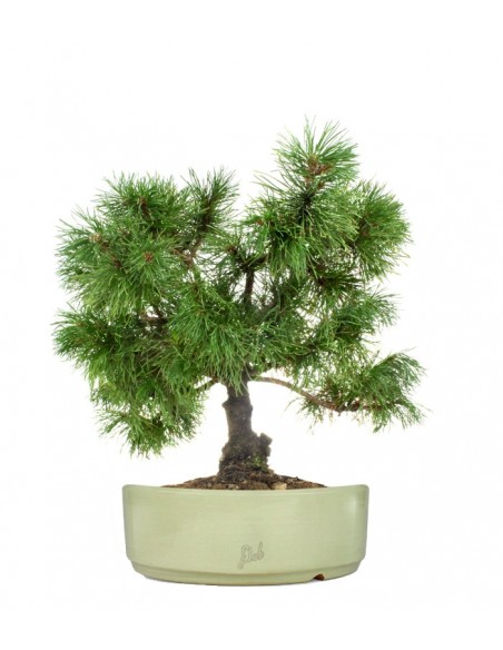 La specie di Pino mugo è rintracciabile in tutta l'Europa centrale e nei Balcani, specialmente nelle zone montane. I suoi colori vanno dal verde al marrone fino al violaceo. E' molto conosciuto per un olio essenziale che si estrae dai rametti ancora giovani, e per la produzione di liquori come la grappa. E' un bonsai che ama la luce e l'aria, quindi sarà opportuno posizionare la pianta in luogo luminoso e arieggiato durante tutto l'arco della giornata. Durante la stagione estiva è opportuno riparare il vaso per non surriscaldare il substrato e la pianta potrà essere sistemata a mezz'ombra. L'acqua deve essere sempre calibrata, senza esagerare e lasciando asciugare il substrato. Genera piccole pigne; esse si formano da numerosi fiori di colore violetto che poggiano sopra i nuovi germogli.