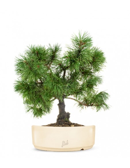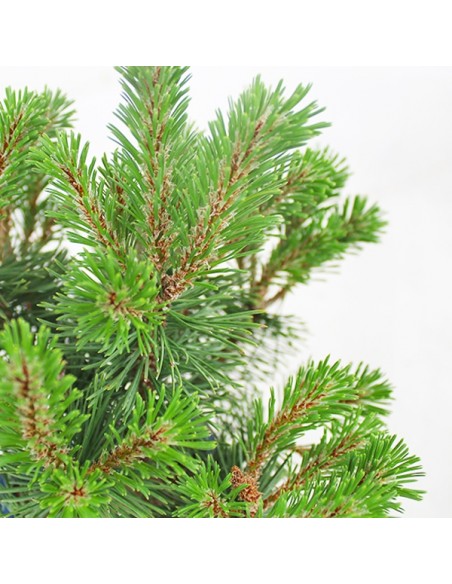 La specie di Pino mugo è rintracciabile in tutta l'Europa centrale e nei Balcani, specialmente nelle zone montane. I suoi colori vanno dal verde al marrone fino al violaceo. E' molto conosciuto per un olio essenziale che si estrae dai rametti ancora giovani, e per la produzione di liquori come la grappa. E' un bonsai che ama la luce e l'aria, quindi sarà opportuno posizionare la pianta in luogo luminoso e arieggiato durante tutto l'arco della giornata. Durante la stagione estiva è opportuno riparare il vaso per non surriscaldare il substrato e la pianta potrà essere sistemata a mezz'ombra. L'acqua deve essere sempre calibrata, senza esagerare e lasciando asciugare il substrato. Genera piccole pigne; esse si formano da numerosi fiori di colore violetto che poggiano sopra i nuovi germogli.