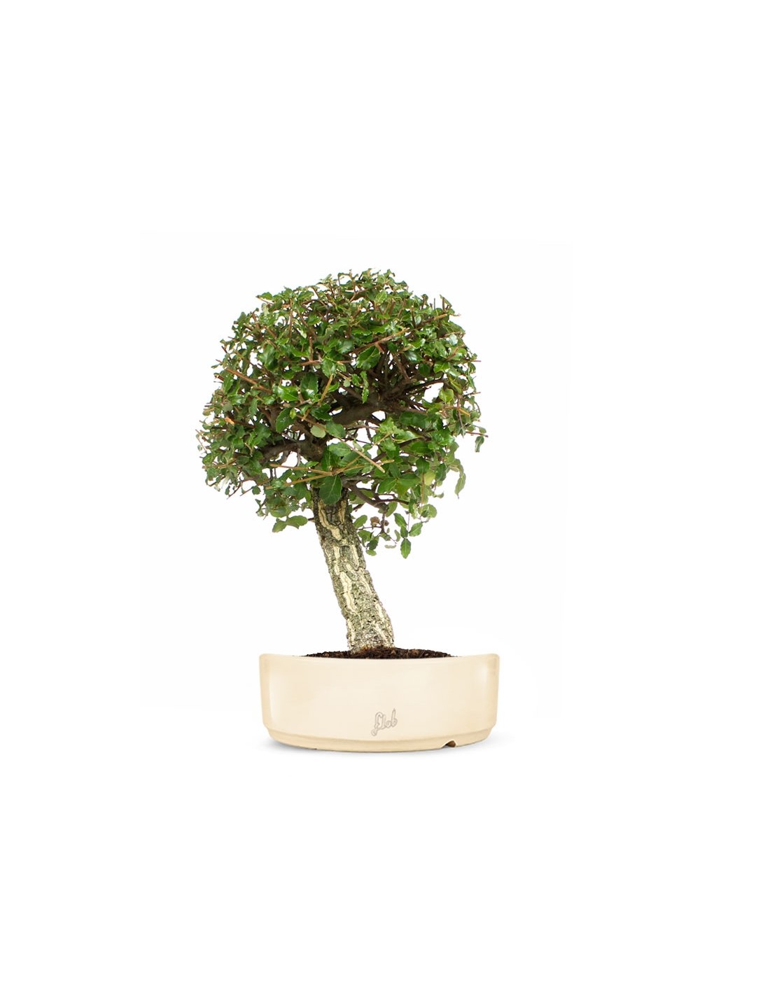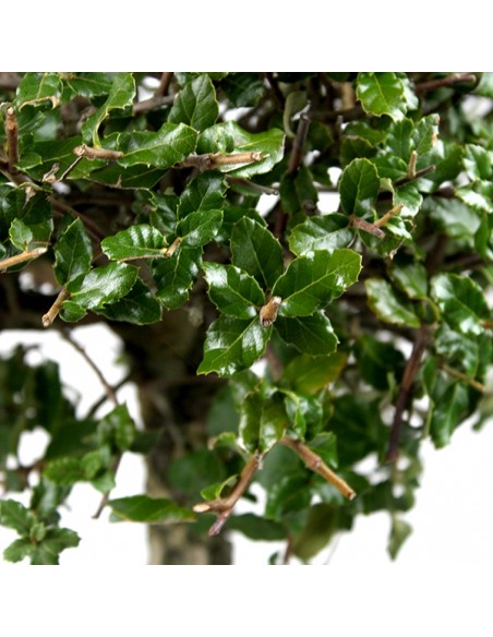 La quercia sughera in forma di bonsai si presenta come una pianta spettacolare per il suo aspetto di enorme e antico albero. ? caratterizzata da foglie molto piccole di un verde intenso, da tronchi molto spessi e da una corteccia ruvida che tende a staccarsi a placche e dalla quale si ricava il sughero. Questo tipo di quercia è un sempreverde e ha un portamento disordinato espanso e per questo assume forme dal forte impatto visivo. Nel periodo tra Maggio e Giugno sviluppa fiori sia maschili, di colore giallo-verde sui rami dell'anno precedente, sia femminili di colore verde sui rami dell'anno corrente. Mentre i frutti nascono successivamente e consistono in ghiande di colore marrone.