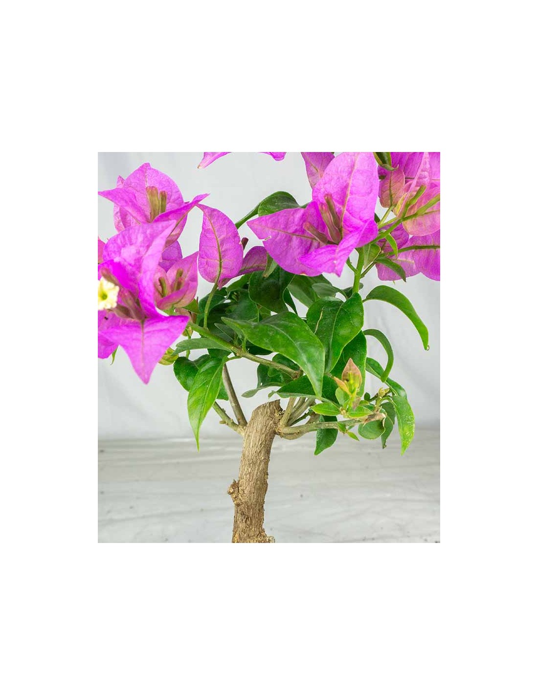 Nonostante la giovane età, la bougainvillea glabra mostra già le caratteristiche tipiche della specie, con una crescita vigorosa e una struttura che può essere valorizzata nel tempo con le tecniche bonsai.
