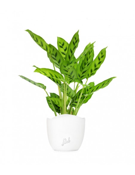 La calathea leopardina è una pianta tropicale sempreverde di origine brasiliana dove vive nelle foreste ombrofile. Il suo nome insolito deriva dalla particolare caratteristica delle foglie, queste ultime si presentano di un colore verde brillante con macchie più scure che ricordano il manto di un leopardo. Una pianta dal grande fascino, lussureggiante ed elegante, in grado di impreziosire ogni ambiente. Se posizionata nell'angolo giusto della casa diventerà una vera e propria attrazione.