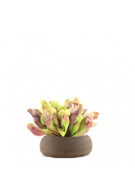 La Sarracenia Purpurea Hybride è una pianta carnivora molto appariscente, per via dell'aspetto prorompente dei suoi ascidi dal colore vivido e rossastro. L'ascidio presenta una forma piuttosto allungata, ristretta nella sua parte inferiore e molto ampia presso l'imboccatura. Quest'ultima presenta una fisionomia ondulata che conferisce a questa pianta carnivora un aspetto particolarmente elegante. L'ascidio può raggiungere l'altezza di 20 cm, mentre il fiore può svettare fino a 40 cm. La fioritura viene favorita da un corretto riposo invernale della pianta e dà vita a dei bellissimi esemplari a 5 petali di colore violaceo e aspetto globoso. E' opportuno mantenere la Sarracenia ben esposta al sole, anche per preservarne la caratteristica coloritura. D'estate le si può concedere un po' d'ombra nelle ore di punta, per scongiurare danni alla superficie degli ascidi. Sopporta bene le alte temperature, fino ai 37-38°, mentre d'inverno non va mai tenuta a temperature inferiori allo zero. Sotto il profilo della manutenzione, la pianta va mantenuta costantemente in condizioni di umidità, quindi bisogna assicurarsi di lasciare sempre almeno 2 cm d'acqua nel sottovaso. L'innaffiatura va sospesa in inverno, avendo cura di mantenere umida la torba. Voluminosa e dai colori sgargianti, questa pianta carnivora è un'autentica gioia per gli occhi, specialmente quando viene portata a fioritura.