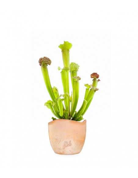 Questa pianta carnivora di forma sinuosa e inusuale riesce a caratterizzare con la sua forte personalità ogni ambiente della casa. Il suo aspetto, per i diversi ascidi dalle venature marroni che si dipartono da un unico rizoma, ricorda quello di un candeliere: deve l'attributo di 'velvet' alla leggera peluria che ne ricopre gli ascidi. Robusta e facile da curare, la Sarracenia vive bene anche all'aperto, in ogni stagione dell'anno, ed è ideale per coltivazioni in piccole torbiere da giardino. Gli sbalzi termici ne esaltano i colori, accentuando in particolare le screziature rosse che diventano dominanti sui toni gialli e quelli bruni. Per potersi garantire foglie sane e vigorose richiede condizioni di luce intensa, ma non il sole diretto: il caldo costante ed eccessivo potrebbe danneggiarla. Le irrigazioni devono essere continue; per ricreare l'habitat umido in cui vive allo stato naturale, questa pianta carnivora richiede una costante presenza di acqua piovana o demineralizzata nel sottovaso. Le operazioni di potatura si riducono a una ordinaria manutenzione, utile per eliminare di volta in volta le parti seccate e deteriorate, così come le radici in eccesso.