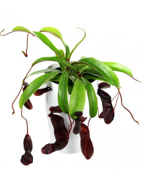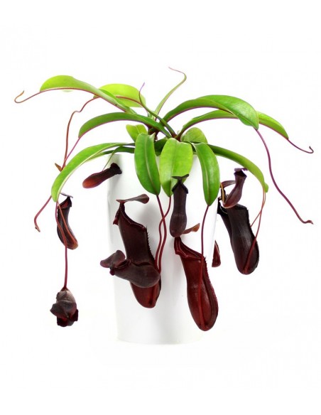 'Sorella' della Bloody Mary, questa Nepenthes alata presenta una colorazione degli ascidi particolarmente scura. Si tratta in realtà di un ibrido ottenuto recentemente, con sfumature violacee particolarmente interessanti. Rispetto alla Nepenthes Bloody Mary, gli ascidi sono sostenuti da dei viticci più lunghi e più distanti l'uno dall'altro. Come per tutte le carnivore, questa Nepenthes Alata può contenere una gran quantità di liquido. In natura cresce nelle grandi foreste pluviali e raggiunge anche 15 metri d'altezza!