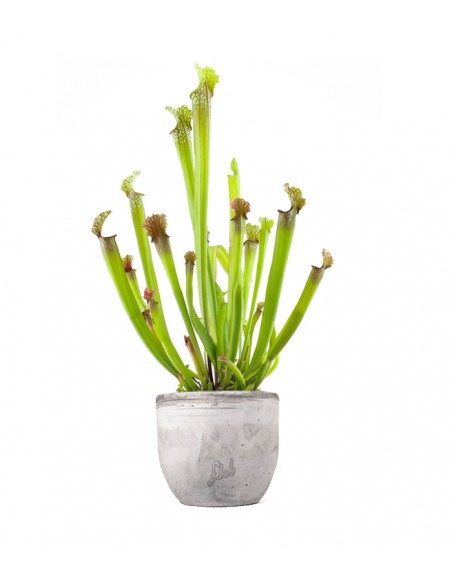 Questa pianta carnivora, di grande effetto estetico, ha una curiosa architettura data dall'insieme delle sue foglie coniche. A primavera, durante il periodo di fioritura, diventa ancora più accattivante e può decidere di esibire leggiadri fiori penduli che possono raggiungere dimensioni considerevoli, di tonalità rosacea punteggiata di rosso. Impossibile negare che si tratti di una pianta di grande effetto e che rappresenti un eccellente pezzo d'arredo in grado di caratterizzare fortemente gli ambienti. Studiata per la prima volta dal botanico canadese Michel Sarrazin, è una pianta che si adatta bene in qualsiasi clima ma predilige gli angoli ben illuminati e privi di sole diretto, in quanto il caldo eccessivo e costante potrebbe surriscaldare le radici. Comunque sia, considerando che si adatta perfettamente a temperature comprese fra gli 0°C e i 30°, non la si può certo considerare esigente. Necessita, invece, di un buon livello di umidità ed è quindi una buona pratica disporla in un sottovaso riempito con un paio di centimetri di acqua piovana o di acqua distillata. Di tanto in tanto, anche una leggera spruzzata sulle foglie aiuta la Sarracenia a crescere e a mantenersi in buon salute. Occasionalmente le foglie vanno pulite con un panno umido, eliminando le parti seccate o rovinate, e procedete a rimuovere le radici che risultano essere in eccesso.