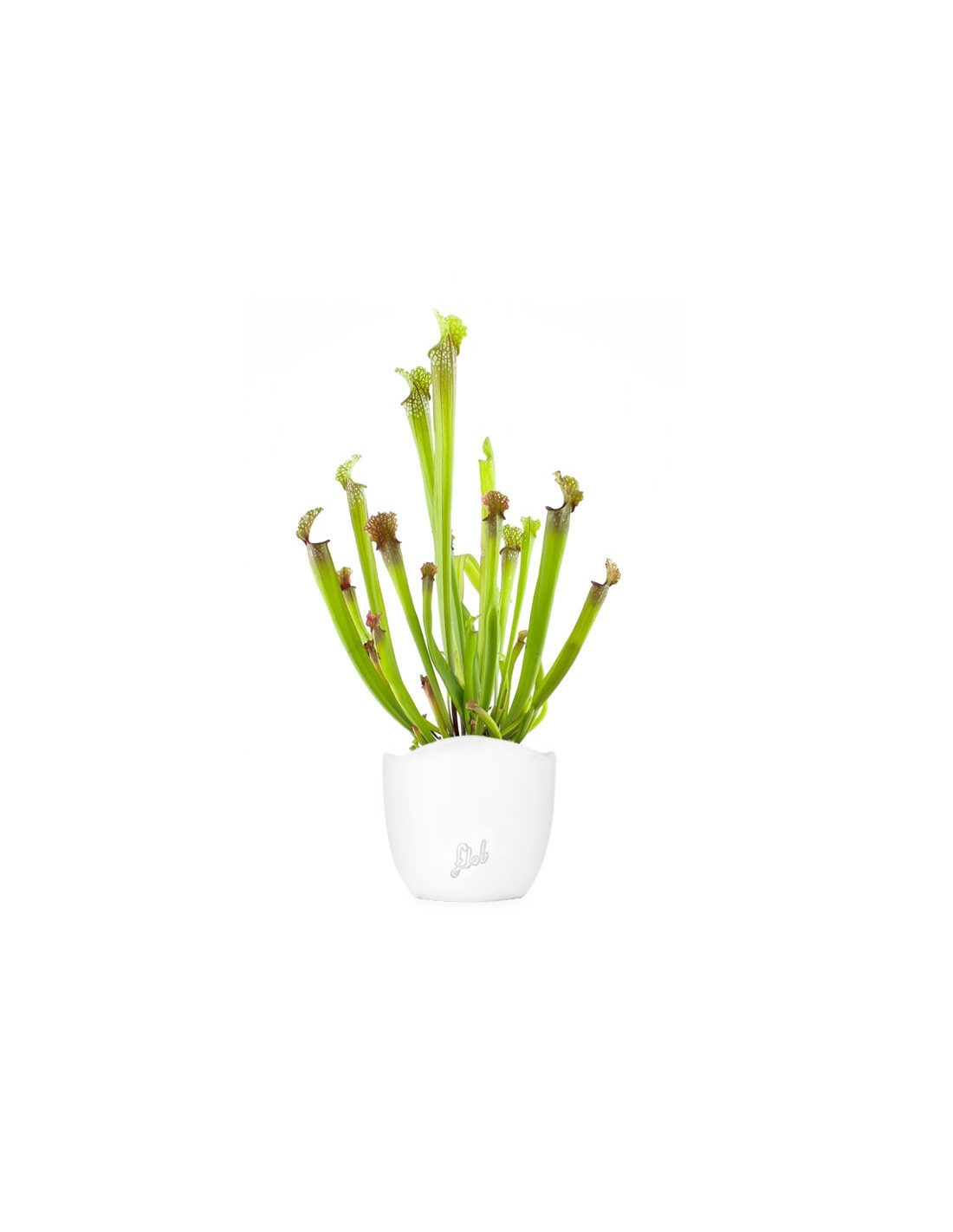 Questa pianta carnivora, di grande effetto estetico, ha una curiosa architettura data dall'insieme delle sue foglie coniche. A primavera, durante il periodo di fioritura, diventa ancora più accattivante e può decidere di esibire leggiadri fiori penduli che possono raggiungere dimensioni considerevoli, di tonalità rosacea punteggiata di rosso. Impossibile negare che si tratti di una pianta di grande effetto e che rappresenti un eccellente pezzo d'arredo in grado di caratterizzare fortemente gli ambienti. Studiata per la prima volta dal botanico canadese Michel Sarrazin, è una pianta che si adatta bene in qualsiasi clima ma predilige gli angoli ben illuminati e privi di sole diretto, in quanto il caldo eccessivo e costante potrebbe surriscaldare le radici. Comunque sia, considerando che si adatta perfettamente a temperature comprese fra gli 0°C e i 30°, non la si può certo considerare esigente. Necessita, invece, di un buon livello di umidità ed è quindi una buona pratica disporla in un sottovaso riempito con un paio di centimetri di acqua piovana o di acqua distillata. Di tanto in tanto, anche una leggera spruzzata sulle foglie aiuta la Sarracenia a crescere e a mantenersi in buon salute. Occasionalmente le foglie vanno pulite con un panno umido, eliminando le parti seccate o rovinate, e procedete a rimuovere le radici che risultano essere in eccesso.