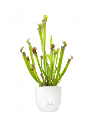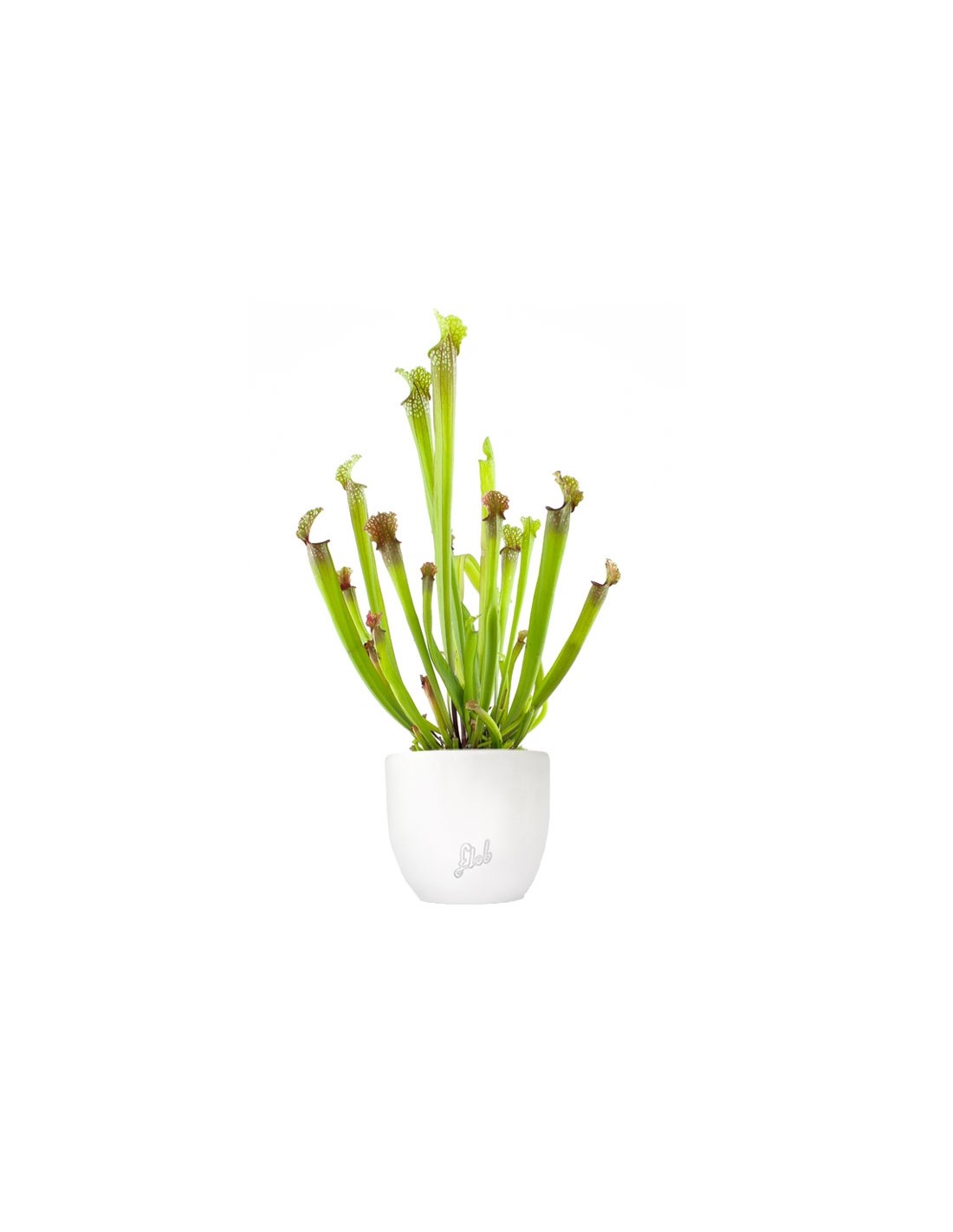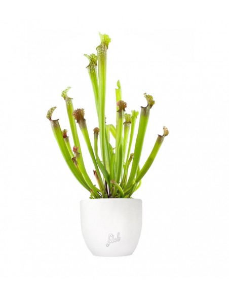 Questa pianta carnivora, di grande effetto estetico, ha una curiosa architettura data dall'insieme delle sue foglie coniche. A primavera, durante il periodo di fioritura, diventa ancora più accattivante e può decidere di esibire leggiadri fiori penduli che possono raggiungere dimensioni considerevoli, di tonalità rosacea punteggiata di rosso. Impossibile negare che si tratti di una pianta di grande effetto e che rappresenti un eccellente pezzo d'arredo in grado di caratterizzare fortemente gli ambienti. Studiata per la prima volta dal botanico canadese Michel Sarrazin, è una pianta che si adatta bene in qualsiasi clima ma predilige gli angoli ben illuminati e privi di sole diretto, in quanto il caldo eccessivo e costante potrebbe surriscaldare le radici. Comunque sia, considerando che si adatta perfettamente a temperature comprese fra gli 0°C e i 30°, non la si può certo considerare esigente. Necessita, invece, di un buon livello di umidità ed è quindi una buona pratica disporla in un sottovaso riempito con un paio di centimetri di acqua piovana o di acqua distillata. Di tanto in tanto, anche una leggera spruzzata sulle foglie aiuta la Sarracenia a crescere e a mantenersi in buon salute. Occasionalmente le foglie vanno pulite con un panno umido, eliminando le parti seccate o rovinate, e procedete a rimuovere le radici che risultano essere in eccesso.