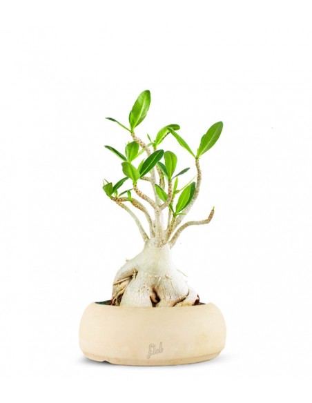 Adenium arabicum è una pianta succulenta appartenente alla famiglia delle Apocynaceae presenta tronco particolarmente gonfio che ricorda un albero di baobab in miniatura. È una varietà morfologica di Adenium obesum, ma è conosciuta come una specie separata e molto richiesta tra i collezionisti di 'piante grasse'. L'Adenium arabicum in apparenza è simile all'Adenium obesum, ma crea un caudice massiccio, più tozzo e grasso senza molta differenziazione tra tronco e rami ed è la specie più succulenta. Anche i tronchi carnosi ei rami corti sono un po 'più colorati dal viola al marrone scuro. Ha anche foglie carnose più spesse e lucenti sulla superficie superiore e inferiore, a differenza dell'Adenum obesum ed è una pianta estremamente tollerante alla siccità. I fiori, simili in molti modi a quelli del Frangipani, vanno dal rosa al rosso e brillano quando la luce del sole li illumina. La forma della pianta varia nell'abitudine e la maggior parte delle piante in coltivazione sono ibridi, tuttavia solo alcuni nomi di cultivar hanno una descrizione valida.