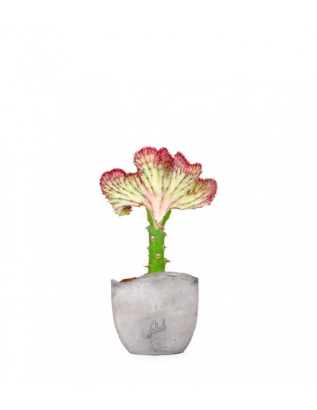 Una vera bellezza tra le piante di euforbia: l'euforbia lactea Crestata con la sua forma e le sue sfumature di colore è sicuramente una specie affascinante e particolare. In natura può arrivare a 5 metri di altezza. Questa succulenta proveniente dall'India ha la conformazione di un ventaglio ondulato e crestato, che presenta un ‘ampia varietà di nuance di colore partendo dal bianco, al verde e a tutte le tinte del rosa e fucsia. L' Euforbia lactea quindi, oltre ad essere molto facile da coltivare e per questo adatta anche a chi si approccia per la prima volta al mondo delle piante grasse, ha anche un grande valore ornamentale. Posizionata all'interno del vaso Flob in terracotta si sentirà a casa in qualsiasi interno.