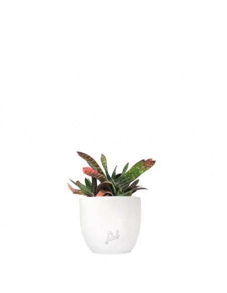 Proveniente dal Sud Africa, questa Gasteria viene ricordata in particolare per la conformazione delle sue foglie, estremamente carnose e robuste ma allo stesso tempo graziose per la loro variegatura in rilievo. Solitamente le gasteria presentano 2 sfumature differenti di verde, ma in questa varietà la tonalità vira verso il rosso creando un delizioso contrasto con il resto della foglia, che nella pagina inferiore presenta anche delle striature biancastre, molto più evidenti che nella parte superiore.