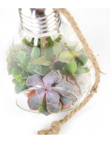 Selezione di Echeverie all'interno di una lampadina di vetro, ideale da appendere