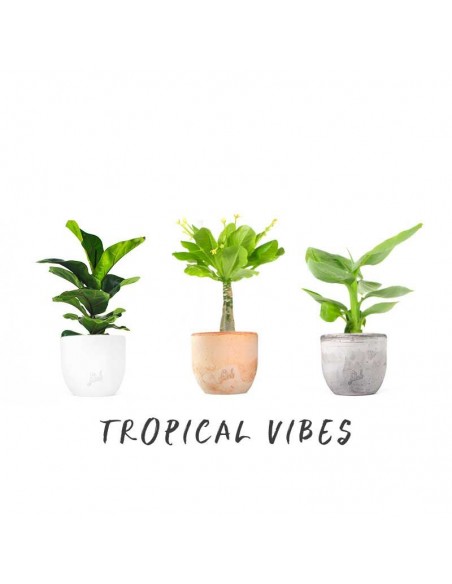 Sono decorative, esotiche e ci ricordano l'estate. Le piante tropicali contenute in questo kit ci riportano a isole selvagge e paesaggi lontani dove relax e ritmi lenti fanno da padrone. L'effetto wow si traduce nel fogliame lussureggiante, nei colori sgargianti e nelle forme inusuali. Il loro principale vantaggio è quello di resistere perfettamente al caldo intenso e a lunghi periodi di siccità.