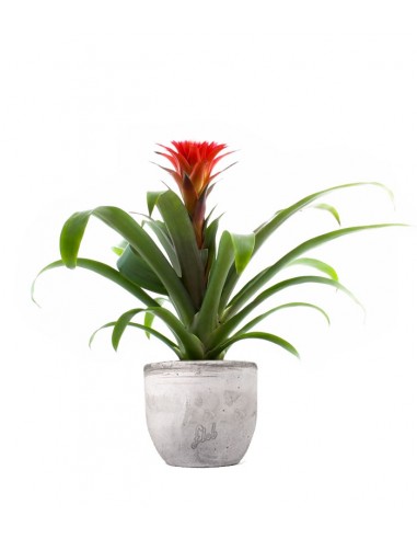 Guzmania Hope è una pianta da interni che ha il merito di portare vivacità: sempreverde, con foglie screziate disposte a rosetta e con brattee floreali che sfoggiano tinte rosso-arancio intensamente brillante, cattura l'attenzione e si propone come una macchia di colore dalle linee sinuose e sofisticate, perfetta in una stanza dall'arredo di tendenza. Sistematela in un angolo caldo e ben illuminato, evitando però che venga colpita dal sole diretto durante l'estate. Se in natura all'interno della sua rosetta si forma un deposito d'acqua, è un bene per la pianta, che ama l'umidità e che dai resti organici che vi si depositano trae il suo nutrimento; in appartamento, però, è importante controllare che la temperatura di quest'acqua non scenda troppo e provvedere al suo ricambio. Guzmania può resistere qualche giorno senza innaffiature ma, in linea di massima, va irrigata abbondantemente ed è importante inserire nel sottovaso dell'argilla espansa, da tenere umida. Niente ristagni di acqua, però! Dopo aver dato origine alla sua bellissima fioritura, la pianta muore; ma i germogli, che nel frattempo saranno sbucati alla base della rosetta, daranno vita a nuove piante. Puoi semplicemente tagliare la parte secca e lasciarle crescere, oppure staccarle e collocarle in un altro vaso, non molto più grande della base della nuova rosetta.