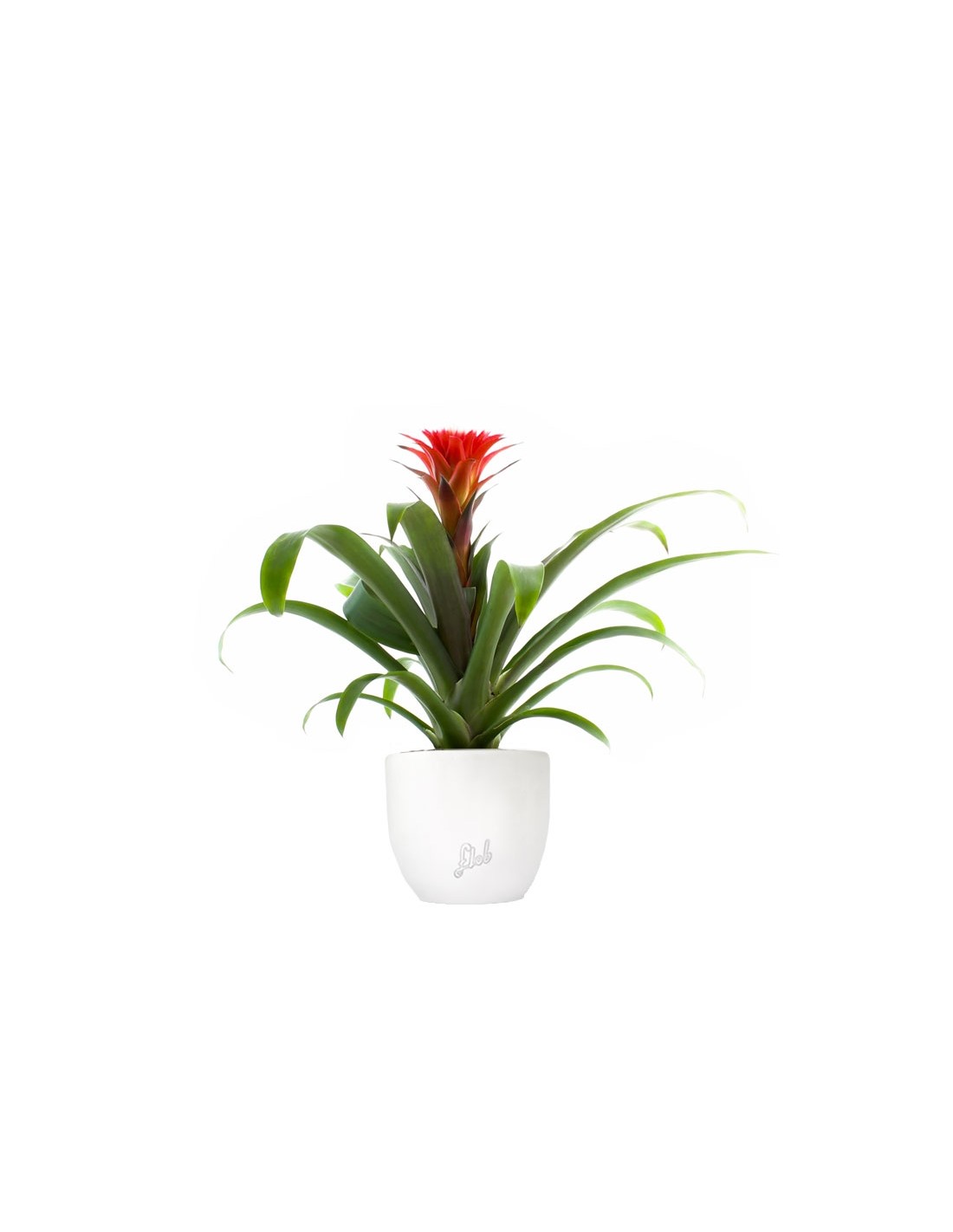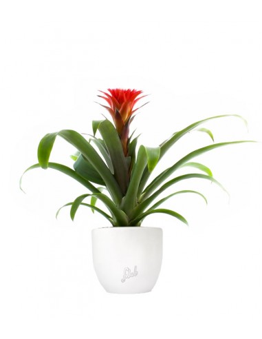 Guzmania Hope è una pianta da interni che ha il merito di portare vivacità: sempreverde, con foglie screziate disposte a rosetta e con brattee floreali che sfoggiano tinte rosso-arancio intensamente brillante, cattura l'attenzione e si propone come una macchia di colore dalle linee sinuose e sofisticate, perfetta in una stanza dall'arredo di tendenza. Sistematela in un angolo caldo e ben illuminato, evitando però che venga colpita dal sole diretto durante l'estate. Se in natura all'interno della sua rosetta si forma un deposito d'acqua, è un bene per la pianta, che ama l'umidità e che dai resti organici che vi si depositano trae il suo nutrimento; in appartamento, però, è importante controllare che la temperatura di quest'acqua non scenda troppo e provvedere al suo ricambio. Guzmania può resistere qualche giorno senza innaffiature ma, in linea di massima, va irrigata abbondantemente ed è importante inserire nel sottovaso dell'argilla espansa, da tenere umida. Niente ristagni di acqua, però! Dopo aver dato origine alla sua bellissima fioritura, la pianta muore; ma i germogli, che nel frattempo saranno sbucati alla base della rosetta, daranno vita a nuove piante. Puoi semplicemente tagliare la parte secca e lasciarle crescere, oppure staccarle e collocarle in un altro vaso, non molto più grande della base della nuova rosetta.