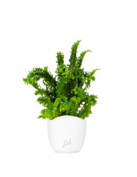 La Nephrolepis, spesso conosciuta con il nome di Felce di Boston, è una pianta che necessita di poche attenzioni. E' particolarmente interessante dal punto di vista decorativo e possiede anche forti proprietà di depurazione dell'aria; per questo potrai posizionarla in un ufficio o in un soggiorno. Le foglie di questa varietà “Emina Dragon Tail” si orientano verso l'alto e sono più rigide rispetto ad altre felci; inoltre possiedono un notevole aspetto arricciato/crestato ed è proprio quest'ultimo che gli conferisce il soprannome “Coda di drago”. Le foglie più giovani di questa pianta crescono dal centro verso l'esterno. Ama i posti luminosi ma non la luce del sole diretta.