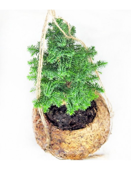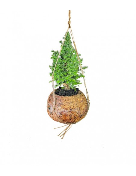 Il vaso in cui è contenuta la pianta di Chamaecyparis è realizzato in cocco, di conseguenza completamente naturale e biodegradabile. Il verde verticale è oggi un vero trend ma questa tecnica nasce da una tradizione antichissima, un'arte popolare giapponese tramandata da generazioni.