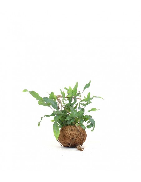 Il Phlebodium, felce già di per sé dall'aspetto eccentrico per via delle sue foglie di colore bluastro, diventa ancora più interessante con questo vaso in fibra di cocco. I maestri zen erano soliti avvolgere i bonsai in sfere di terriccio chiuse tra alghe o muschio, appendendoli poi a soffitti o mensole per creare un vero e proprio vivaio sospeso. Questa pianta riutilizza questo concetto servendosi di una fibra di cocco naturale, e che contiene al suo interno un ulteriore vaso impermeabile biodegradabile in cui è posizionata la felce.