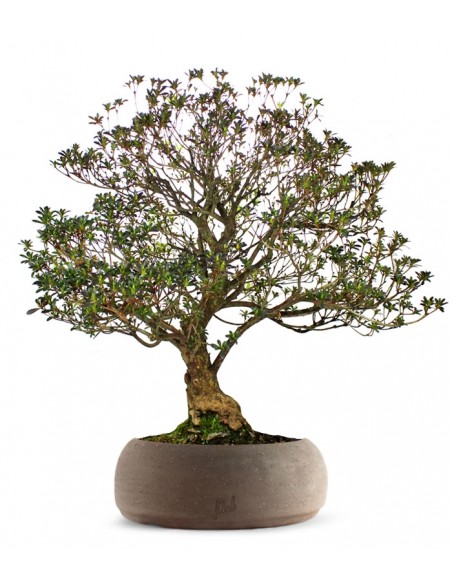 L'Azalea Japonica, conosciuta anche come Albero delle rose o Rhododendron, è una delle varianti più apprezzate dagli artisti bonsaisti per via delle sue foglie piccole e scure, del tronco rugoso con nebari che partono a raggiera e dei fiori bianchi, rosa o violacei, che tendono a ricoprire tutti i rami, offrendo splendide fioriture primaverili. Ama gli ambienti leggermente umidi e luminosi, ma non la luce diretta del sole: l'ideale sarebbe posizionarla accanto a una pianta più grande che possa farle ombra. Necessita di annaffiature frequenti con acqua piovana o demineralizzata e la potatura va fatta quando i 2/3 dei fiori sono appassiti. Come le altre piante appartenenti alla famiglia delle Ericaceae, richiede un terreno acido (pH 4,5-5,5): si possono usare la torba bionda, la sabbia oppure il kanuma, una particolare argilla giapponese.