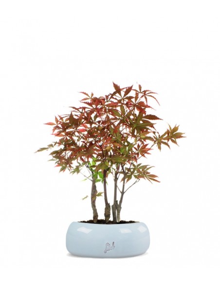 I germogli nascono color rosso bordeaux, e generano foglie della stessa tinta, che evolvono però in verde durante l'estate e ritornano rosse durante l'autunno. Il cambiamento di tonalità è infatti la caratteristica che più contraddistingue i bonsai di Acero palmato come questi.