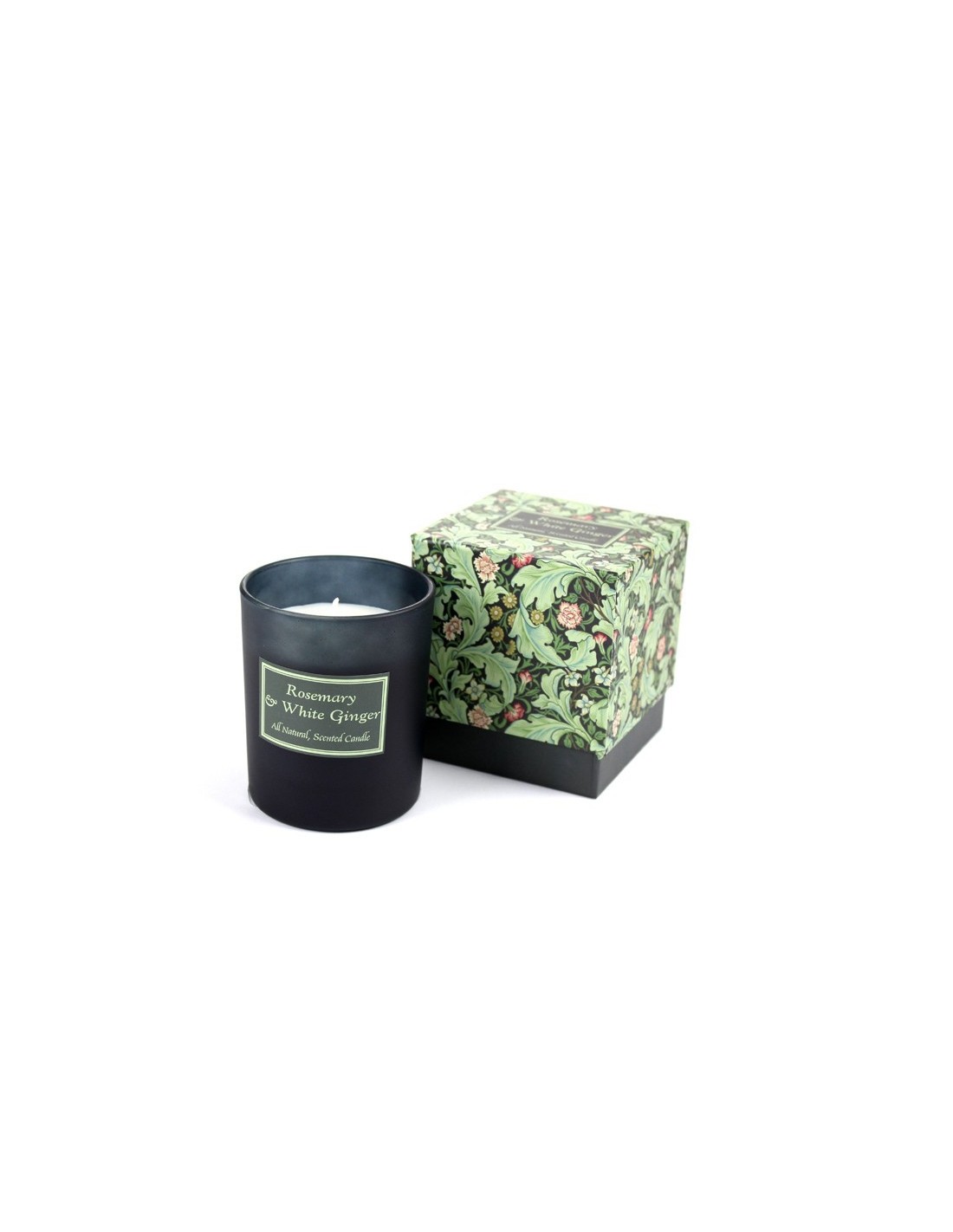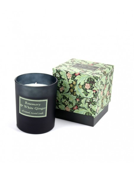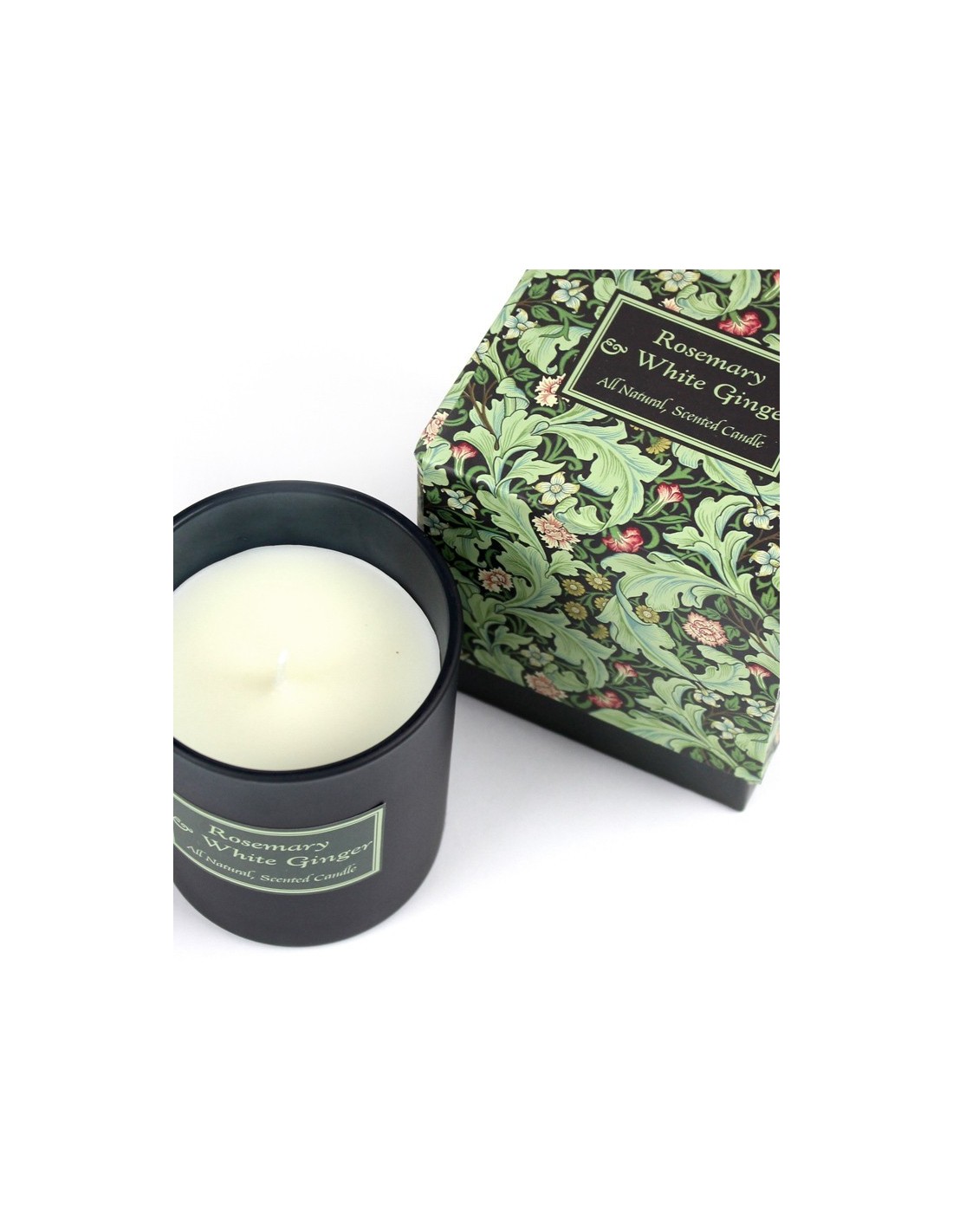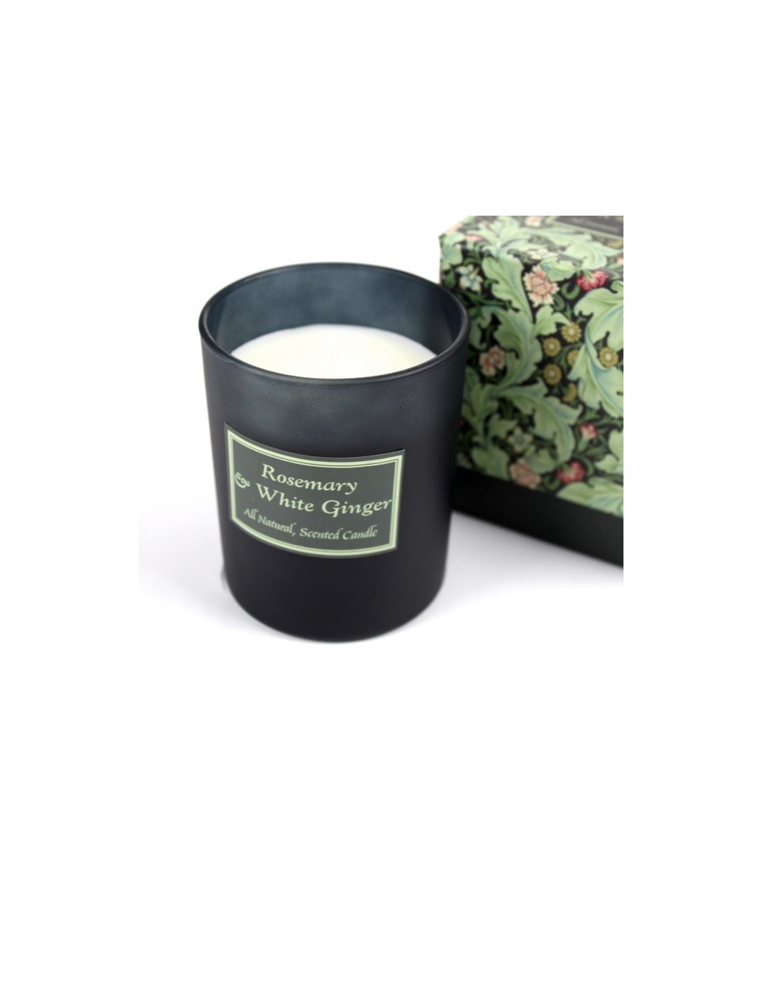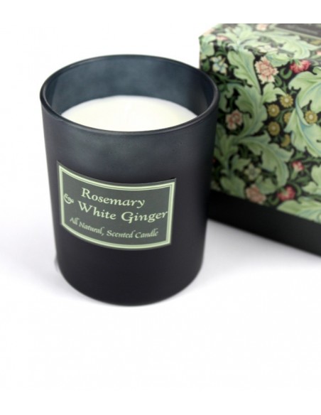 Candela profumata al Rosmarino e Ginger con un design essenziale ed allo stesso tempo elegante: la raffinata decorazione floreale del box in cartoncino si unisce a un vetro di colore nero opaco dallo stile moderno e lineare.