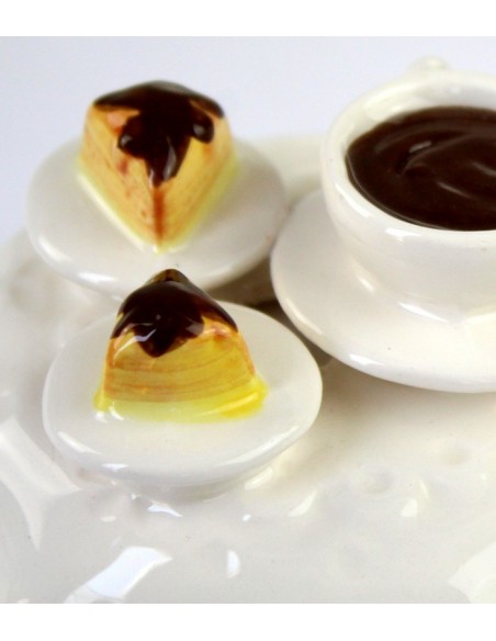 Vaso in vetro con coperchio in ceramica decorato con piattini, tortine e tazza di caffè. Ideale per un regalo semplice e colorato!