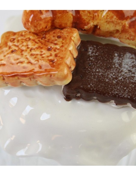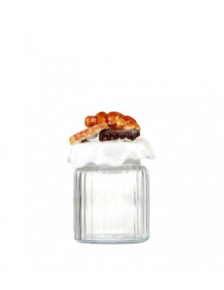 Vaso in vetro con coperchio in ceramica decorato con croissant e biscotti. Ideale per un regalo semplice e colorato!