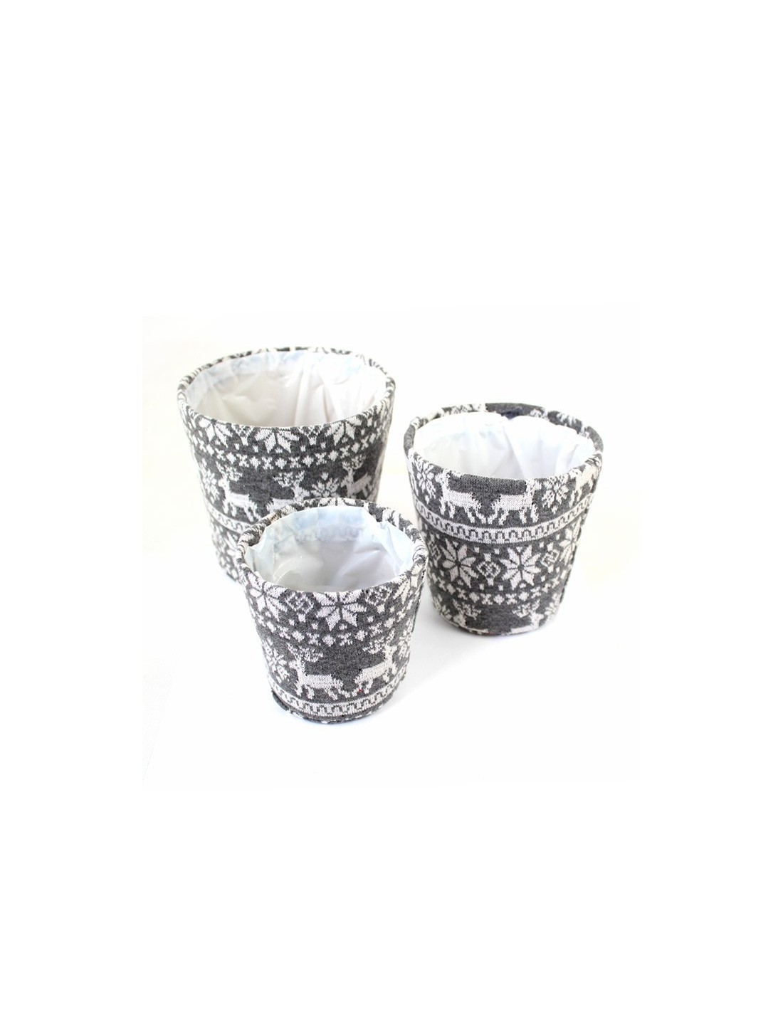 Con questo tris di vasi natalizi in tessuto ricamato, di colore grigio e bianco, omaggerete la vostra casa con un pensiero moderno e allo stesso tempo raffinato.