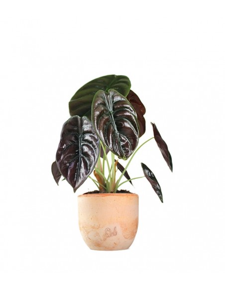 L' Alocasia “Red Secret” e? una pianta d'appartamento sempreverde originaria delle aree tropicali del Sud- est asiatico, che appartiene alla famiglia delle Araceae. Chiamata comunemente anche Orecchie di elefante, dal profilo cuoriforme allungato del suo fogliame. Le bellissime foglie grandi ed ovali sono di colore verde e bronzo metallizzato con nervature evidenti nella parte superiore, porpora in quella inferiore. L'alocasia red secret e? una pianta da interno suggestiva e molto decorativa, capace di richiamare alla memoria scenari tropicali.