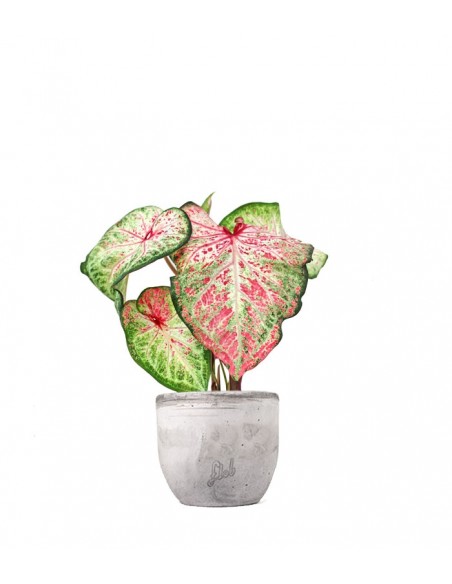 Il caladiium picturatum viene chiamato in inglese anche “ Angel wings” che tradotto significa ali d'angelo, per via della bellezza delle sue grandi foglie cuoriformi. Queste ultime infatti, sono molto decorative grazie all'esplosione di colore che le caratterizza. Le foglie vengono prodotte solo dalla primavera all'autunno , per questo la pianta richiede un periodo di riposo di circa cinque mesi per ricaricarsi e germogliare di nuovo in primavera. Le infiorescenze di colore bianco o verdastro, presentano uno spadice più corto della spata, ma non hanno grande interesse decorativo. Il caladium picturatum è una pianta che si adatta facilmente, per questo è la compagnia perfetta sia per principianti che per persone più esperte. La puoi posizionare su un piano rialzato oppure a terra insieme ad altre piante, in ogni caso sarà in grado di catturare l'attenzione per il suo fascino. È perfetta sia per arredare il living ma anche una camera da letto, fai solo attenzione a non sistemarla in punti di passaggio per evitare che le foglie vengano danneggiate.