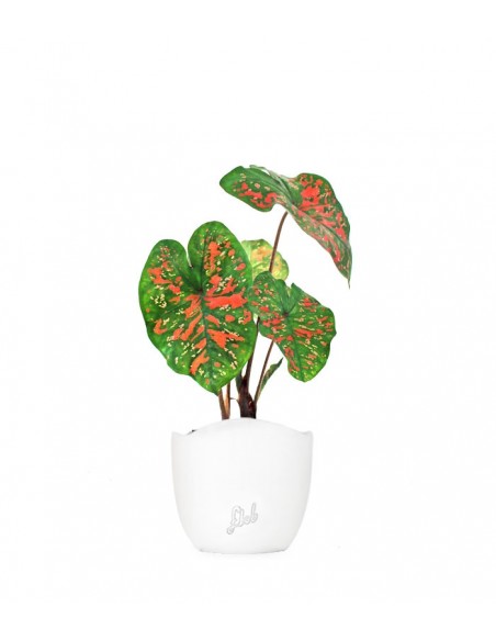 Il Caladium sparkle è una pianta d'appartamento originaria del Brasile, particolarmente apprezzata per le sue foglie ornamentali, caratterizzate da colorazioni vivaci e policrome. Il fondo verde della lamina, infatti, è decorato da variegature rosse, rosa o bianche. Queste ultime vengono prodotte solo dalla primavera all'autunno e quindi la pianta richiede un periodo di riposo di circa cinque mesi per ricaricarsi e germogliare di nuovo in primavera. Le infiorescenze di colore bianco o verdastro, presentano uno spadice più corto della spata, ma non hanno un particolare interesse decorativo. Il caladium picturatum è una pianta che si adatta facilmente, per questo è la compagnia ideale sia per principianti che per persone più esperte. Grazie alla sua esuberanza decorativa è perfetta per arredare il tuo living, con i suoi colori vibranti li renderà luminosi e vivaci. Che sia posizionata su un piano rialzato oppure a terra insieme ad altre piante, in ogni caso sarà in grado di catturare l'attenzione grazie al suo fascino.