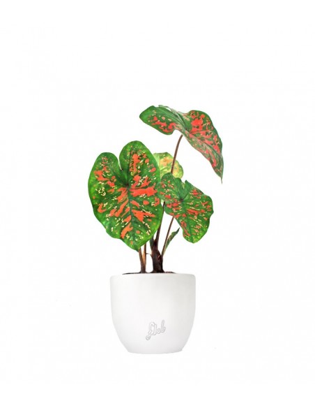 Il Caladium sparkle è una pianta d'appartamento originaria del Brasile, particolarmente apprezzata per le sue foglie ornamentali, caratterizzate da colorazioni vivaci e policrome. Il fondo verde della lamina, infatti, è decorato da variegature rosse, rosa o bianche. Queste ultime vengono prodotte solo dalla primavera all'autunno e quindi la pianta richiede un periodo di riposo di circa cinque mesi per ricaricarsi e germogliare di nuovo in primavera. Le infiorescenze di colore bianco o verdastro, presentano uno spadice più corto della spata, ma non hanno un particolare interesse decorativo. Il caladium picturatum è una pianta che si adatta facilmente, per questo è la compagnia ideale sia per principianti che per persone più esperte. Grazie alla sua esuberanza decorativa è perfetta per arredare il tuo living, con i suoi colori vibranti li renderà luminosi e vivaci. Che sia posizionata su un piano rialzato oppure a terra insieme ad altre piante, in ogni caso sarà in grado di catturare l'attenzione grazie al suo fascino.