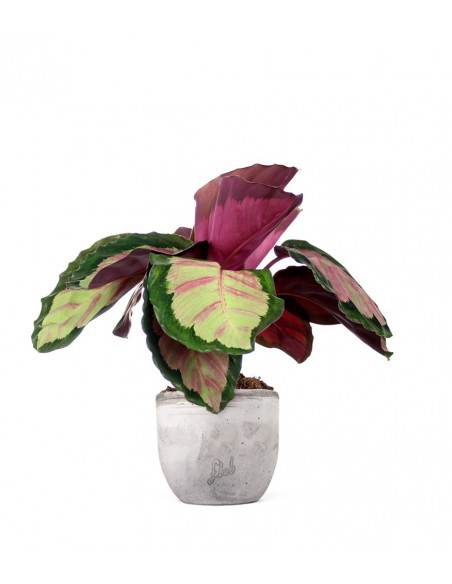 La Calathea è una bellissima essenza proveniente dal Sud America. È una pianta sempreverde molto colorata e colpisce immediatamente per la variegatura delle sue foglie che presentano una grossa bordatura verde mentre il centro è verde chiaro/rossastro. Tra le stesse foglie ovoidali, in natura nascono fiori molto delicati e graziosi, ma è raro vederli comparire se la Calathea è coltivata in appartamento. Il nome Calathea deriva dal greco “Kalathos” ovvero “cesto”, poiché gli indiani utilizzavano le sue lunghe foglie per intrecciare cestini. La sua bellezza la rende particolarmente adatta per ambienti di tendenza. Le stesse foglie, che presentano un gambo rossastro, sono delicatamente ondulate, e ciò la rende ancora più interessante: l'atmosfera tropicale del Sud America farà capolino se collocherai in casa una Calathea come questa!