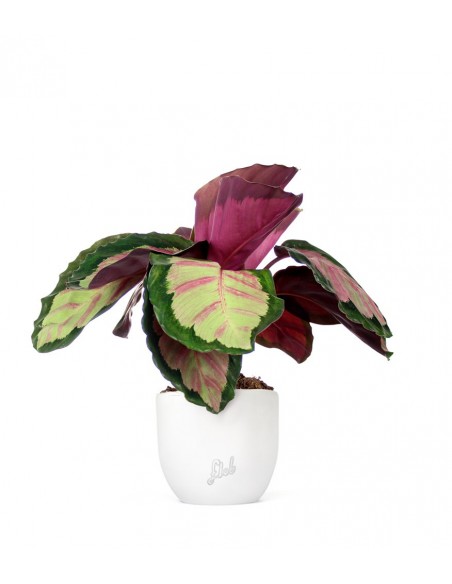 La Calathea è una bellissima essenza proveniente dal Sud America. È una pianta sempreverde molto colorata e colpisce immediatamente per la variegatura delle sue foglie che presentano una grossa bordatura verde mentre il centro è verde chiaro/rossastro. Tra le stesse foglie ovoidali, in natura nascono fiori molto delicati e graziosi, ma è raro vederli comparire se la Calathea è coltivata in appartamento. Il nome Calathea deriva dal greco “Kalathos” ovvero “cesto”, poiché gli indiani utilizzavano le sue lunghe foglie per intrecciare cestini. La sua bellezza la rende particolarmente adatta per ambienti di tendenza. Le stesse foglie, che presentano un gambo rossastro, sono delicatamente ondulate, e ciò la rende ancora più interessante: l'atmosfera tropicale del Sud America farà capolino se collocherai in casa una Calathea come questa!